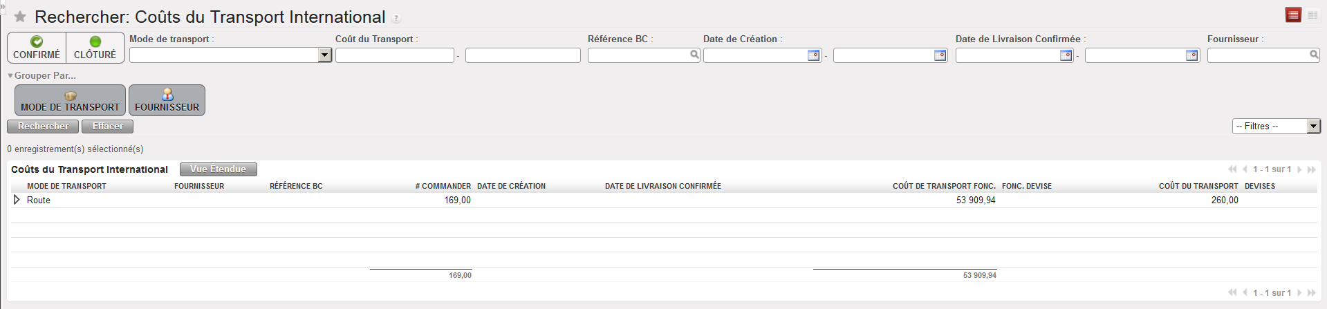 Manuel de l’Utilisateur Supply -> 4. Commandes et Achats -> 4.9 RAPPORT: Rapport d'Approvisionnement -> F. LU-SU3301 Comment faire le suivi des coûts de transport internationaux