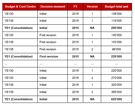 - The version – Within a given decision moment system picks the budget with the highest version number for consolidation