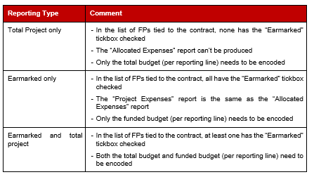 Depending on the reporting type selected in the contract, some key elements need to be remembered: