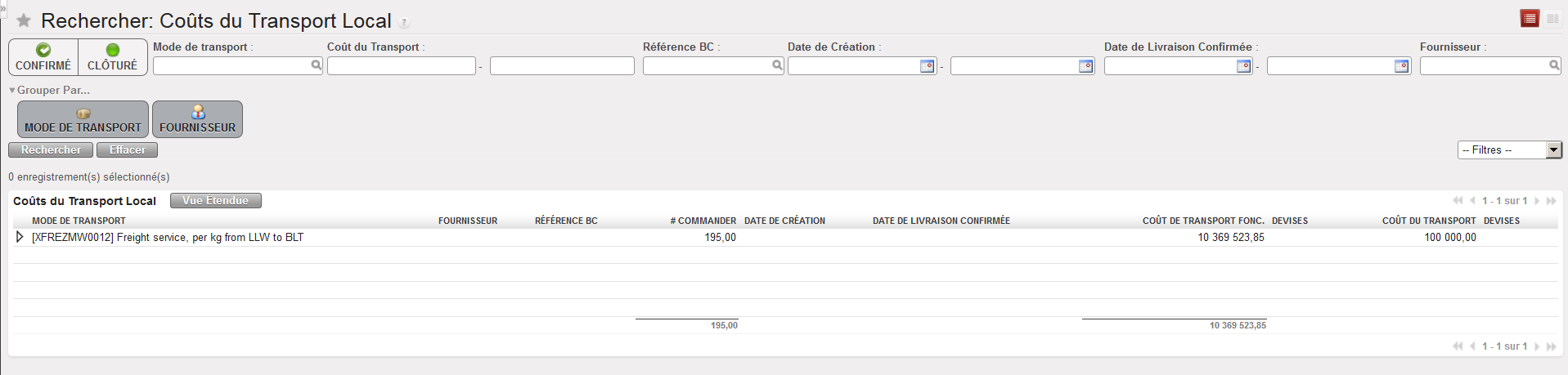 - Le système affiche un rapport avec les informations provenant des POs de catégorie “Transport”.