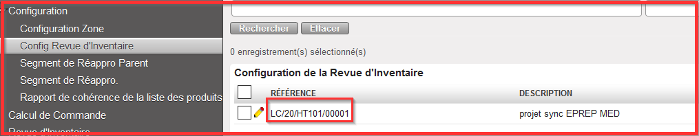 - Sélectionner la Référence de Configuration Zone liée à votre Segment de Réapprovisionnement créer précédemment.