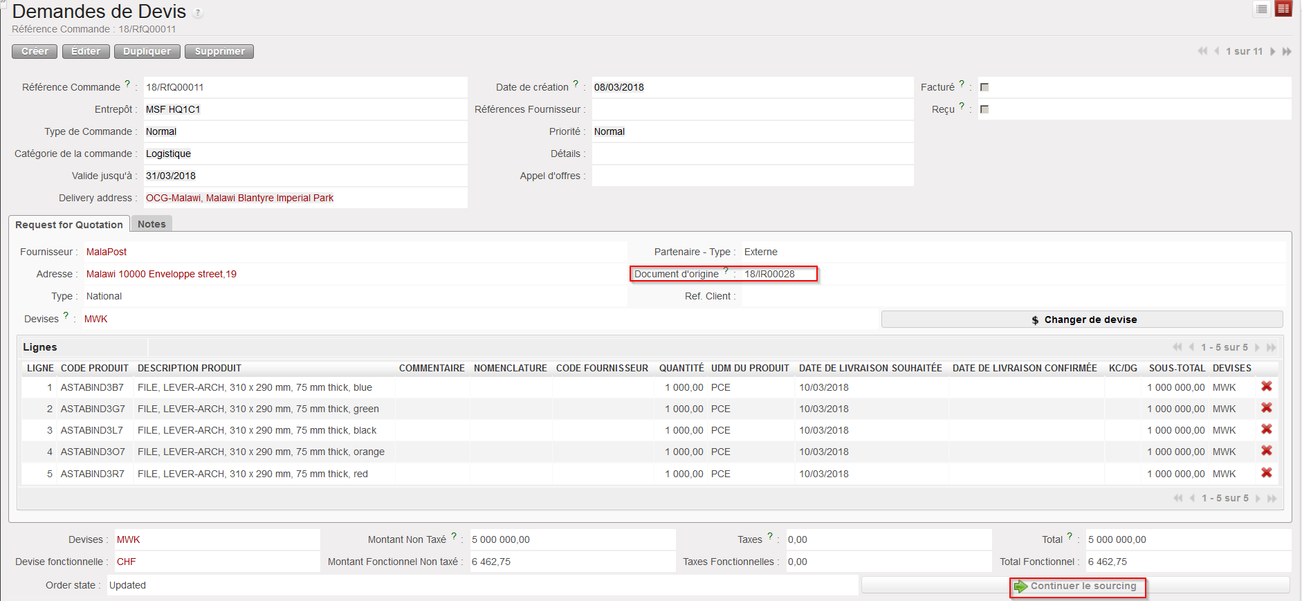 | Génération d’un PO depuis une RFQ créée par l’OST |
