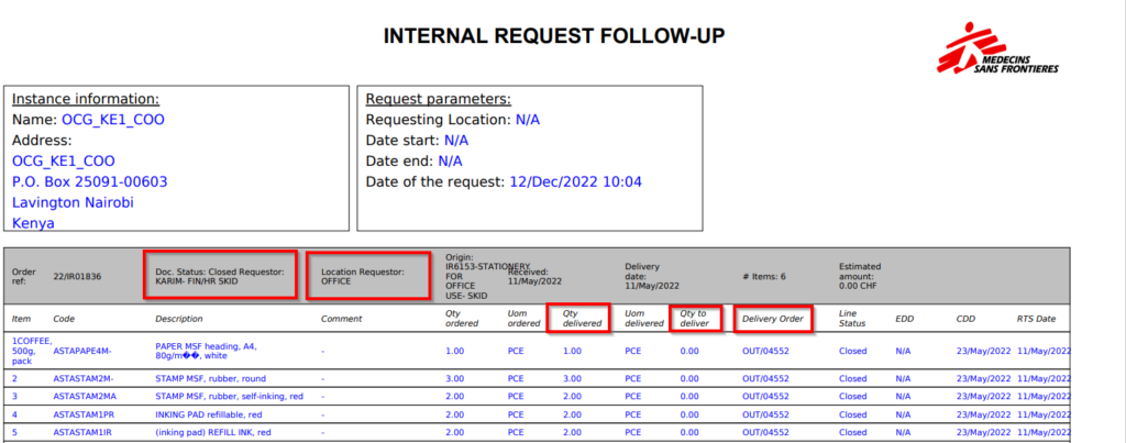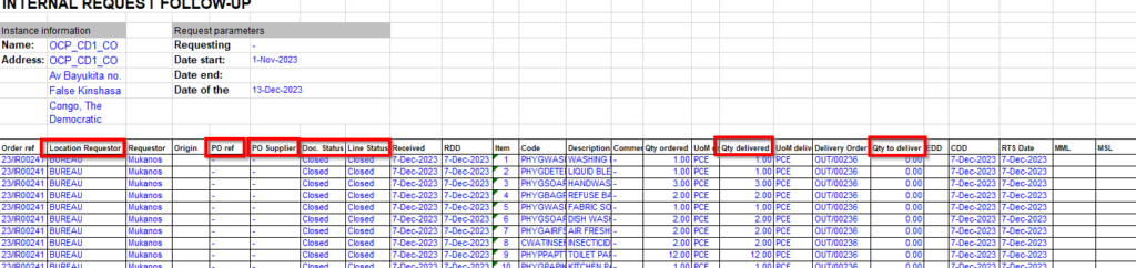 This report provides valuable information such as Document and line status; Qty ordered vs Qt delivered; Reference of sourced documents (PO; OUT)…