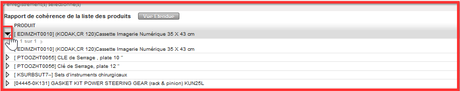 2. Cliquer sur le bouton “Vue Etendue”. Vous obtenez le détail de la description de chaque produit comme illustré ci-dessous.
