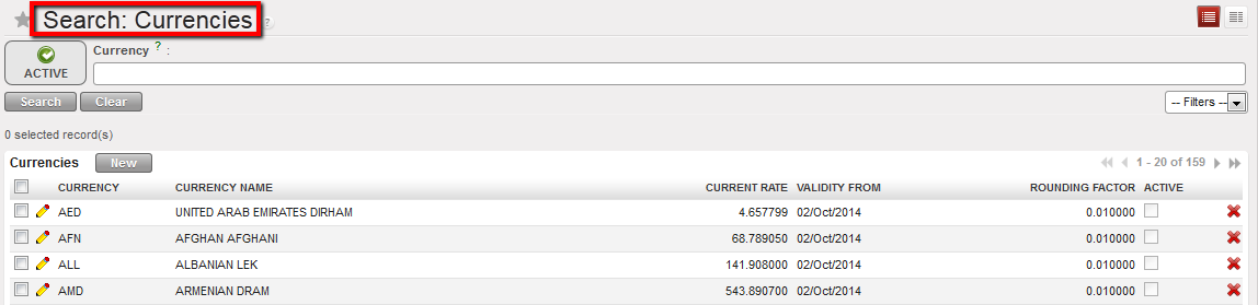 - In UniField go to: Accounting/Configuration /Currency Management/Currencies