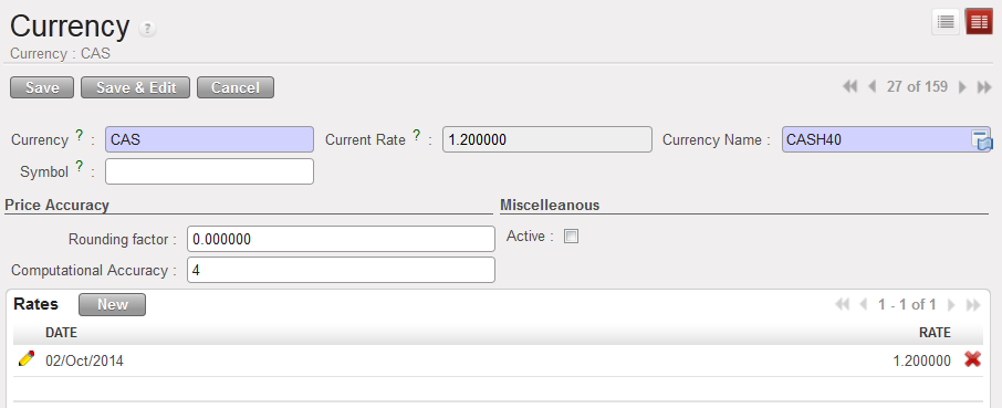 Most currencies used by MSF are based on the accepted ISO standard. However, on occasion it may be necessary to add a non-standard currency. If this is the case in your mission, you must request Headquarter (HQ) to create the currency. It will then synch down to your instance as inactive. You will have to activate it.