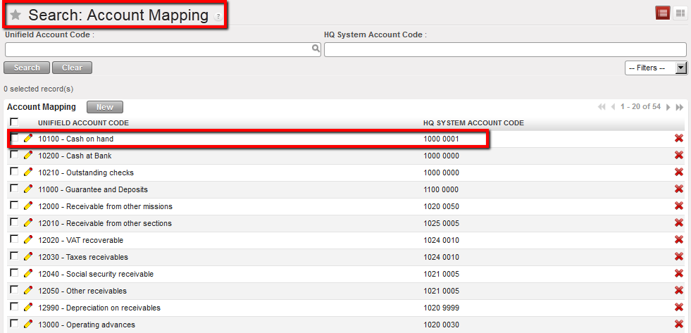 In HQ system, the B/S accounts are different from UniField. A mapping is therefore needed between the field B/S accounts and HQ B/S accounts. You will therefore perform an account mapping using the Account Mapping function.