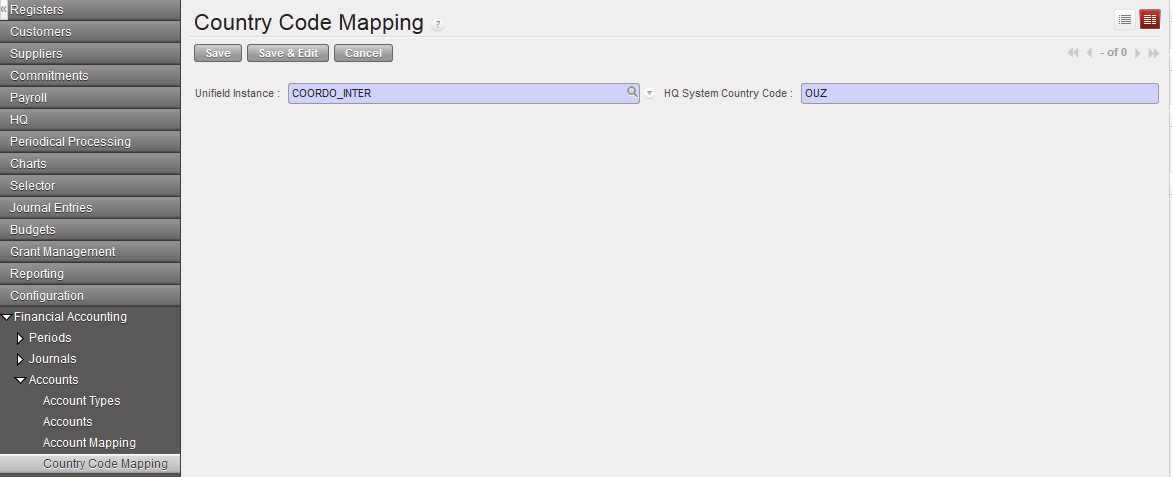 Finance User Manual ENG -> 2. Finance Configurations -> 2.4 Financial Accounts -> LUFI-20405 Country Code Mapping