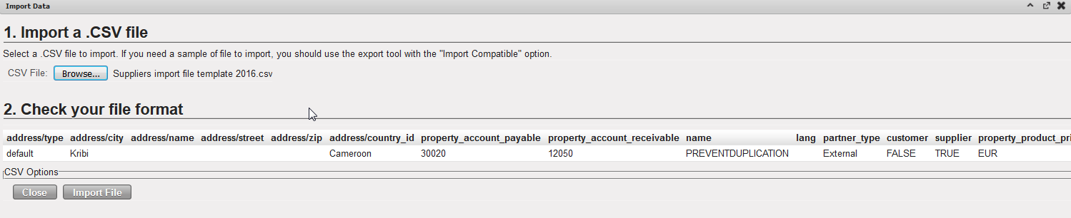 A faster way to create a partner form is to use the “Import” function at the top pane in the “Actions” menu. You will need a template of type csv to process the import. Remember that restrictions on account codes will apply too.