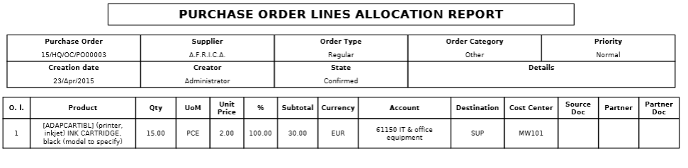 L’AA ne figure pas sur l’allocation du PO, puisque ces informations sont strictement financières. Si nécessaire, le service Finance peut modifier toutes ces informations sur le bon d’engagement et la facture fournisseur.