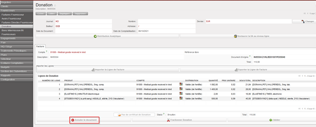1. Ne pas autoriser à supprimer avec le X rouge les lignes IKD (Donations en nature) dans la mesure où l’IKD vient d’un flux d’approvisionnement :