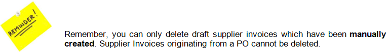 Delete button to erase a draft supplier invoice in the Search Supplier Invoices view