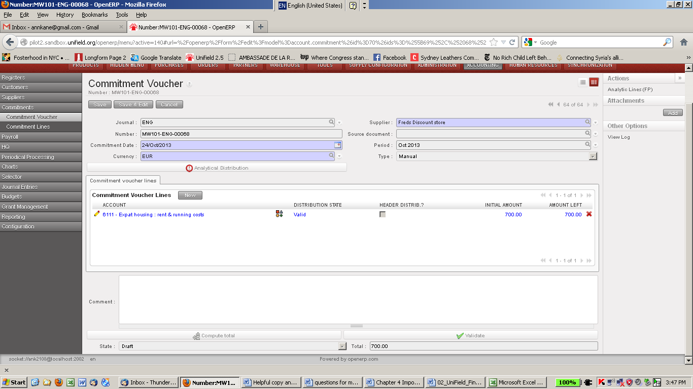 There may be occasions when purchases or payment will not go through the PO process (e.g. services) in which case an advanced user can manually create a commitment voucher. Once the voucher is created, you can validate it.