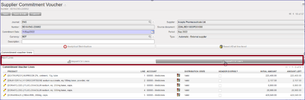 How to Import/Export Invoice Lines in the Commitment Voucher objects: