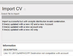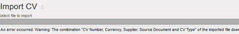 You can export the information, change the data and import the file with the data in Unifield. The import fails in case one of the main components do not match: “CV Number, Currency, Supplier, Source Document and CV Type“: an error message will be shown: