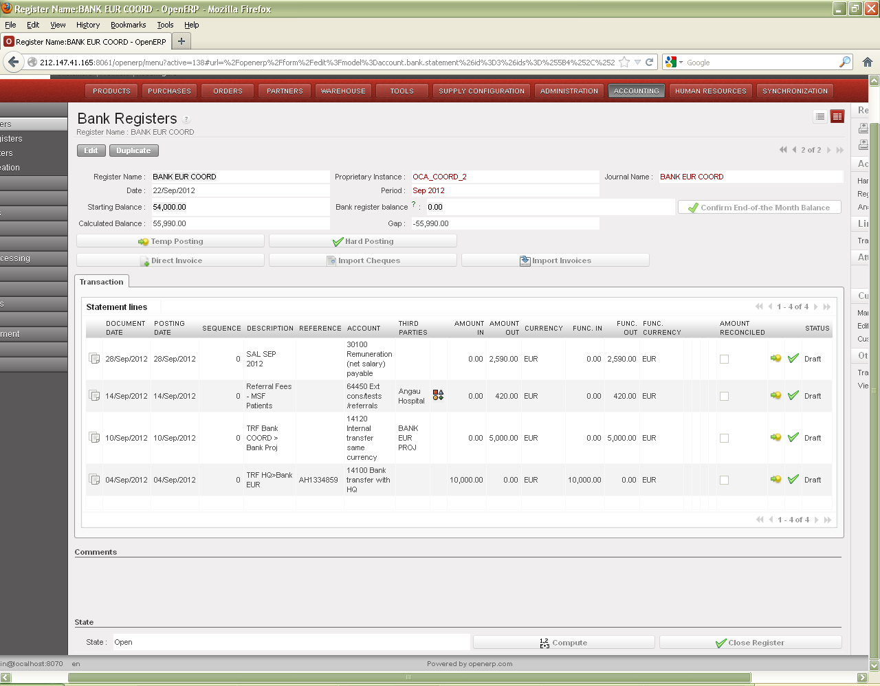 For further information on bank register reports, see UniField Chapter 5 – Searching, Correcting and Closing
