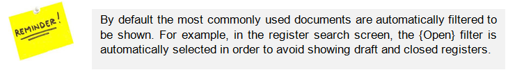 Finance User Manual ENG -> 5. Searching, Correcting and Closing -> 5.1 Searching -> LUFI-50101 Searching Filters