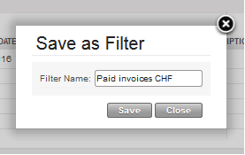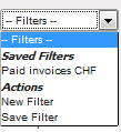 - Save the filter by clicking again on the Filters drop-down list, and select {Save filter}. Enter the name that you would like to call this filter, and then click {Save}.