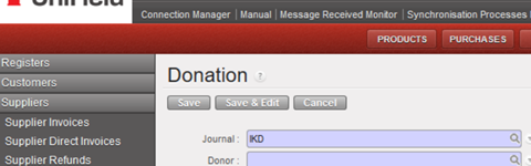 The only journal available is now the IKD journal -In kind donations- (it is not possible to select the ODX journal in manual. This ODX journal will be used just for automatic entries):