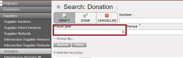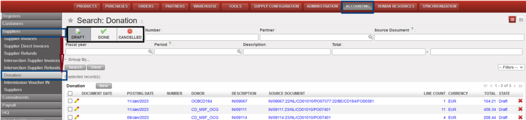 Below the 3 states of donation filters, we have added a new filter named “Fiscal year”, to allow to filter by year: