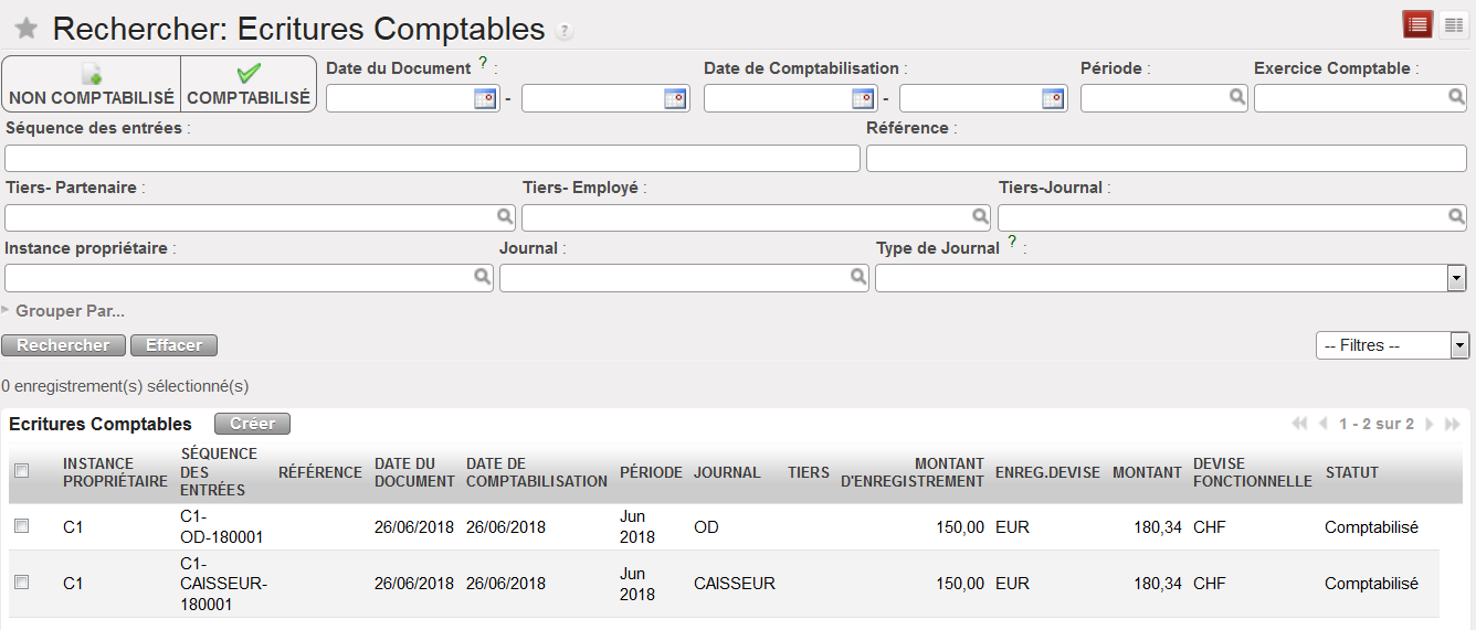 | Instance propriétaire | Sélectionne les écritures comptables créées au sein de l’instance saisie. |