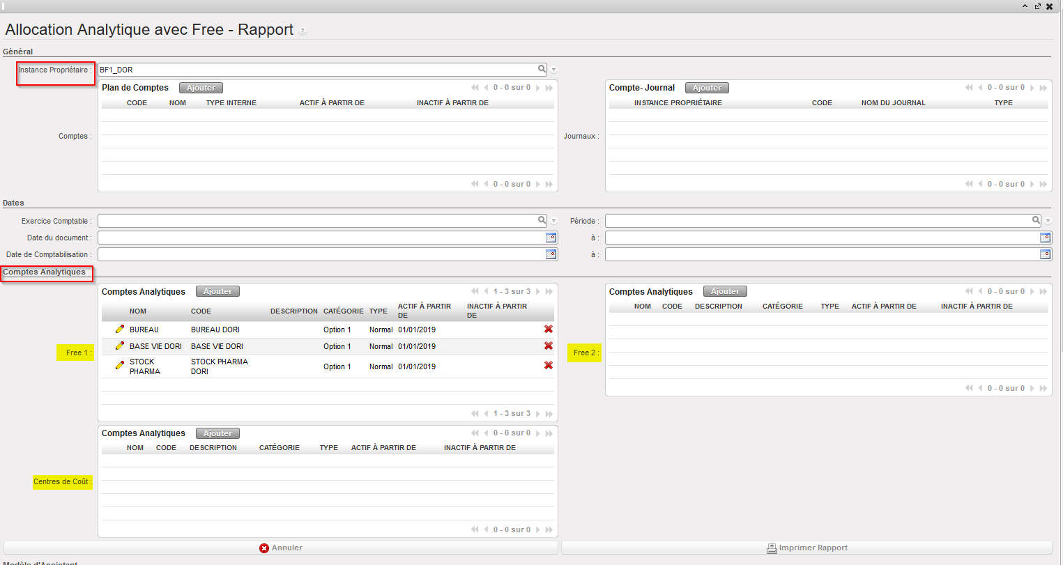 Comment produire un rapport « Allocation Analytique avec Free »