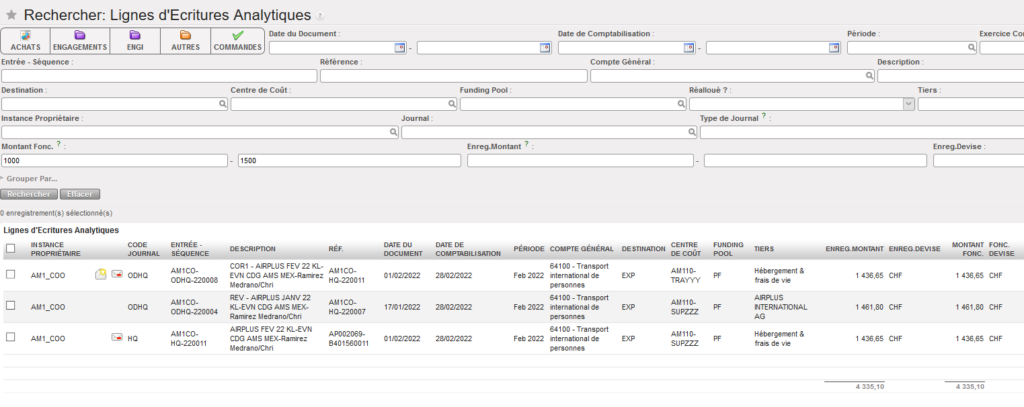 Comment rechercher des lignes d’écritures analytiques