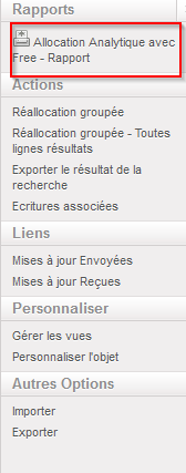 - A partir du menu droit, cliquer sur {Allocation Analytique avec Free – Rapport}