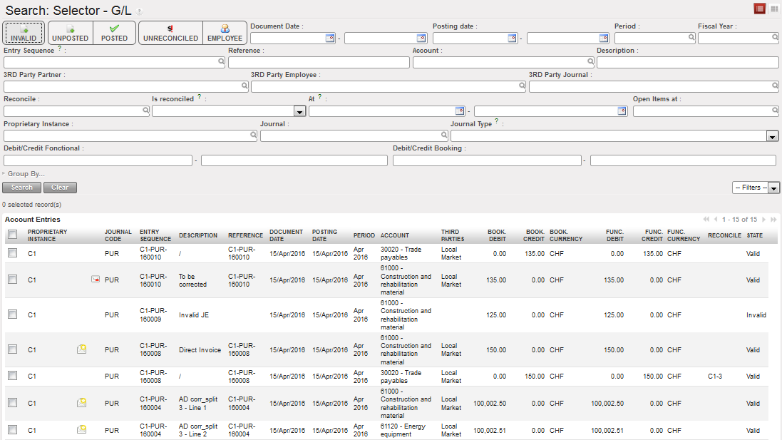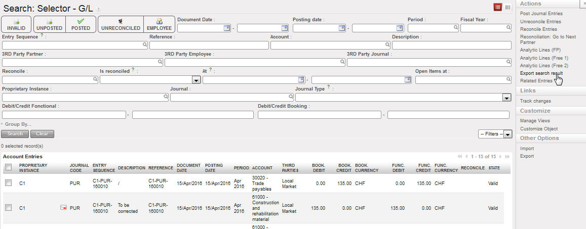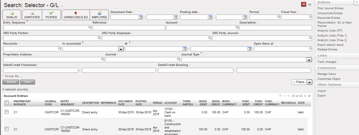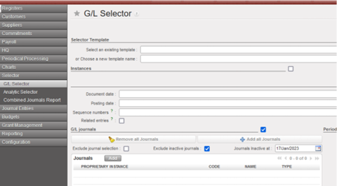 The G/L Selector is a tool to search Journal items when you need to use multiple or complex criteria that cannot be easily done in Journal Items. You can use it for the following actions once the Search G/L selector was performed: