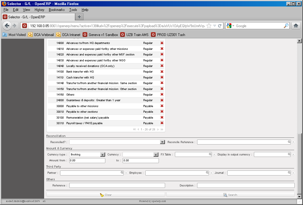 Finance User Manual ENG -> 5. Searching, Correcting and Closing -> 5.1 Searching -> LUFI-50104 The General Ledger (G/L) Selector