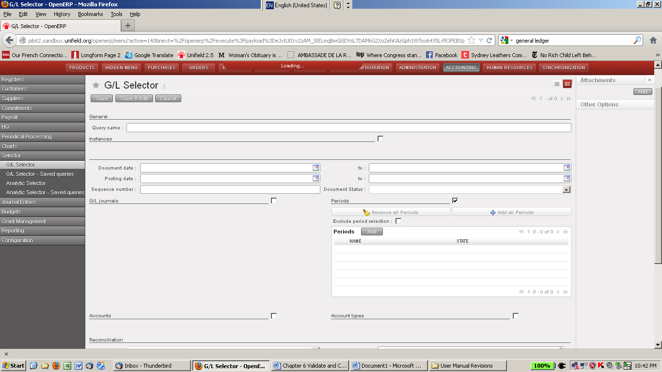 The General Ledger Selector is available in Accounting/Selector/G/L Selector