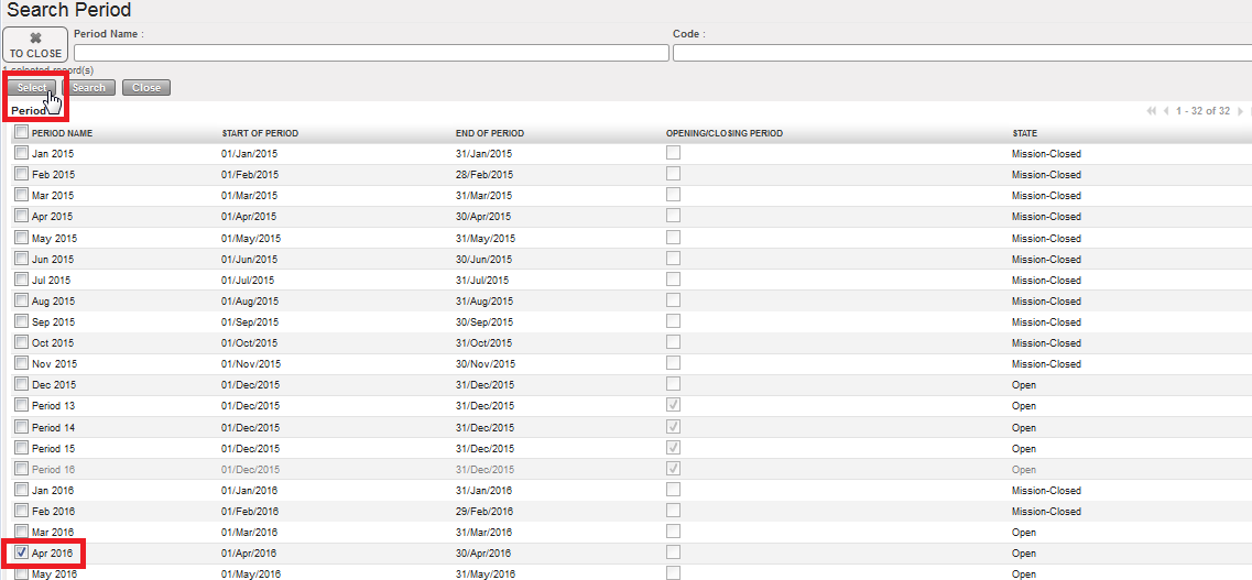 - Now that you have filtered by period and expense accounts, click {Search} at the bottom of the screen.