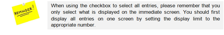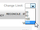 - Change limit to display more records. You can display up to 500 records at a time. You can choose to sort by a column header by clicking on the column header.