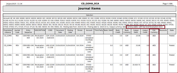 - Both “Analytic Journal Items” & “Journal Items” interfaces will appear with two columns and their totals “Output amount” & “Output curr.”: