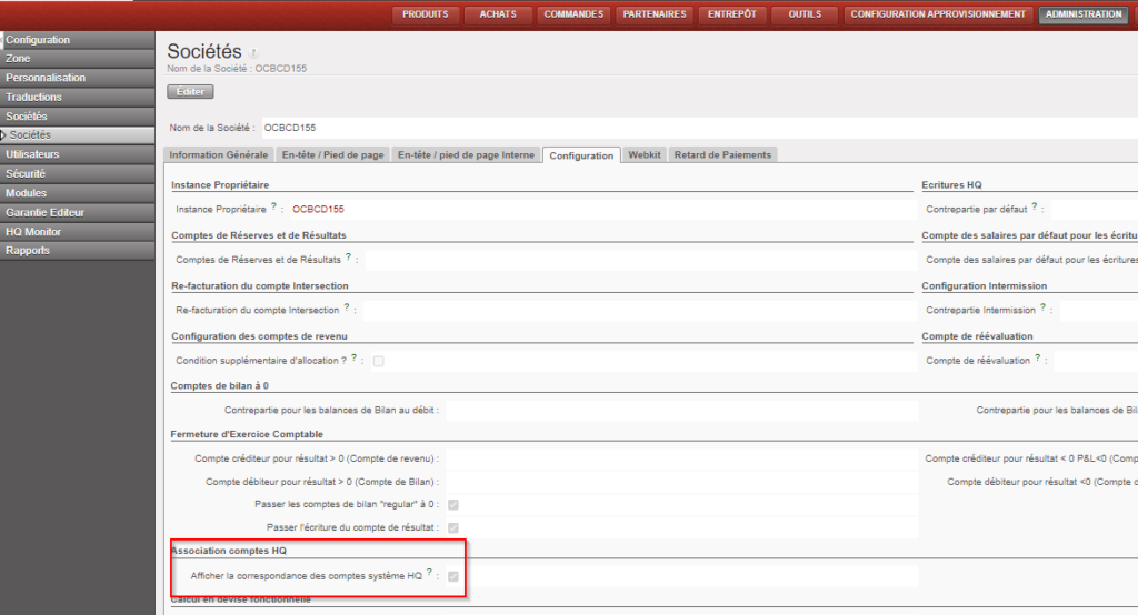 Si dans la configuration de l’instance vous avez coché la case : “Afficher la correspondance des comptes système HQ”, vous aurez des informations additionnel dans le rapport.