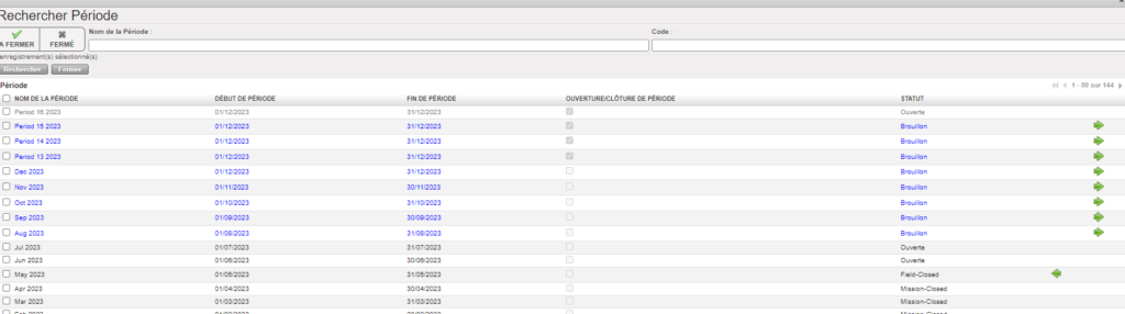 - Vous aurez une liste de toutes les périodes, sélectionner la ou les périodes que vous souhaitez visualiser.
