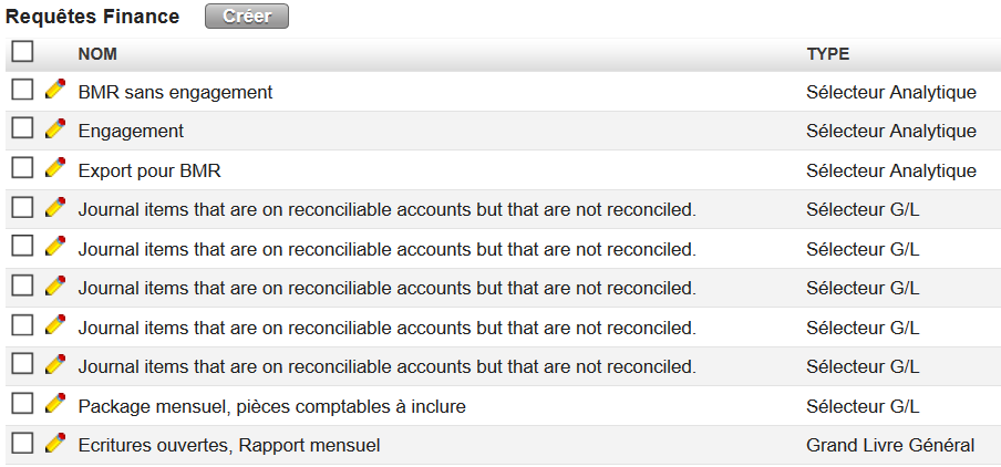 - Depuis Outils, il est alors possible de voir toutes les requêtes finance sauvegardées de l’instance associée.