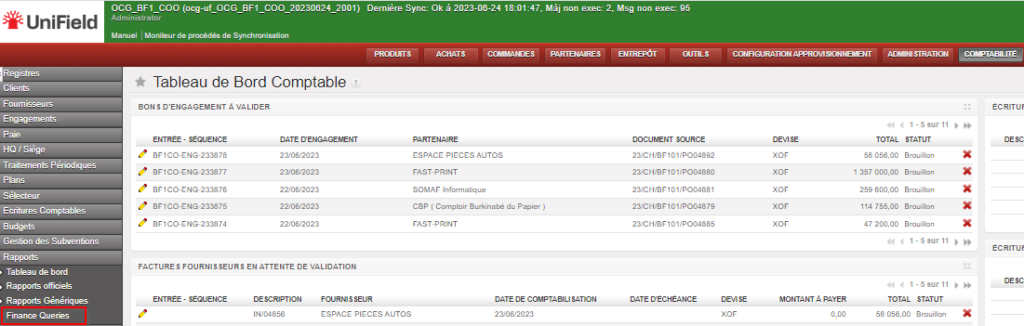 - Comment créer des requêtes de synchronisation finance à partir du système siège ou de la coordination :