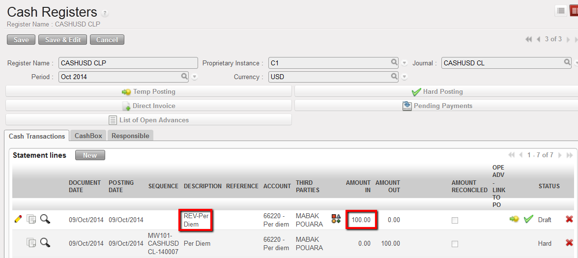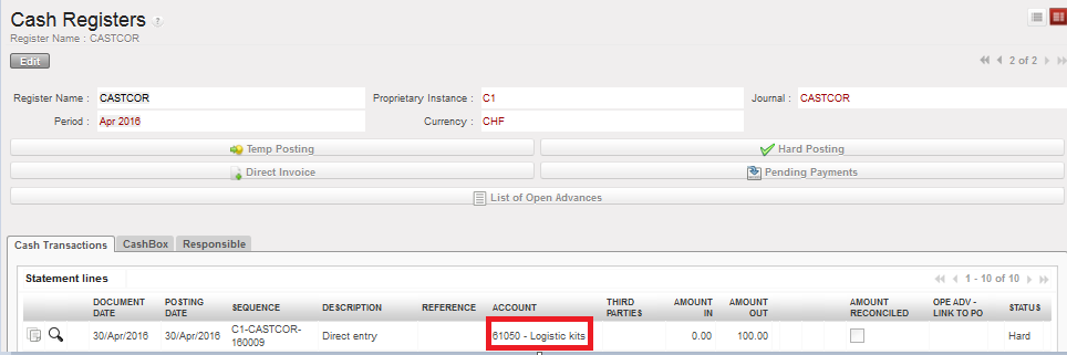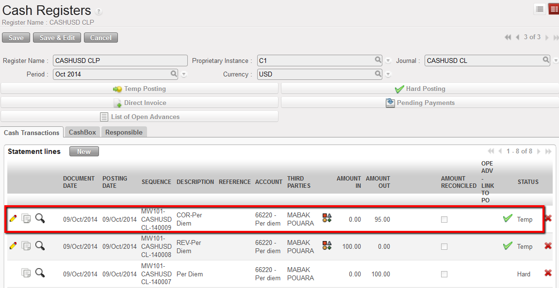 If you need to change a data of a direct entry in Hard-posted state, you will perform an accounting correction as shown below.