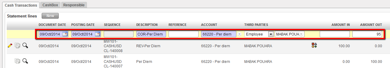 - If correcting amount, change it in the field {Amount Out} or {Amount In}