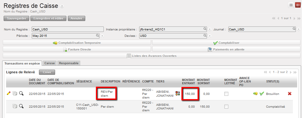 L’entrée contrepassée est sauvegardée et comptabilisée temporairement (Temp)