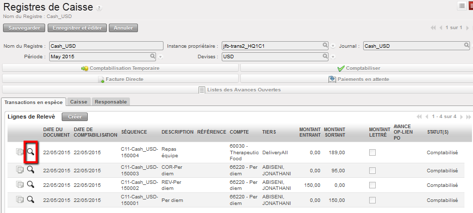 Manuel de l’Utilisateur Finance -> 5. Outils de Recherche, Correction, Clôture comptable -> 5.2 Corrections -> LUFI-50201 Entrées directes.