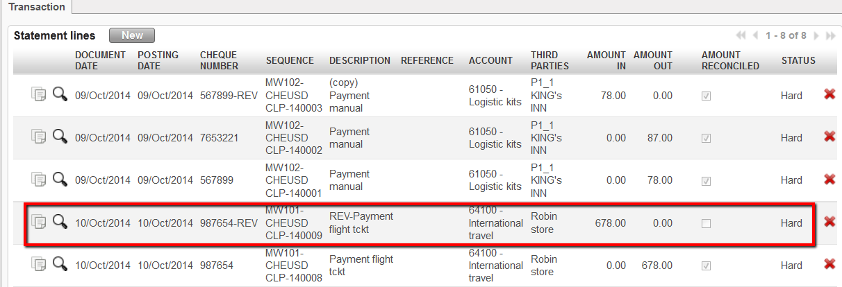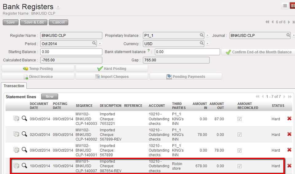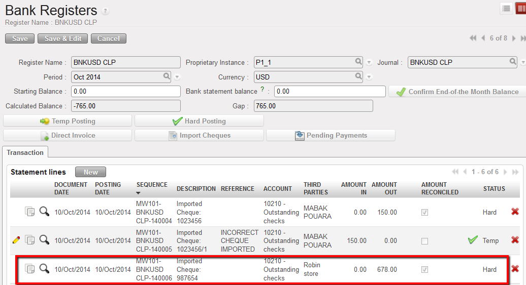 Next, you will create again the cheque which was wrongly imported so that you can reconcile it when it is cashed at your bank.