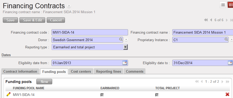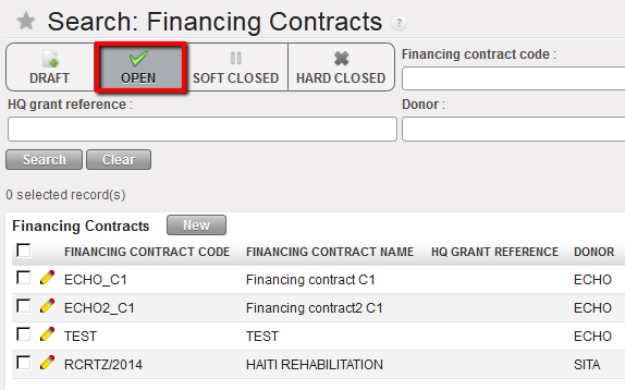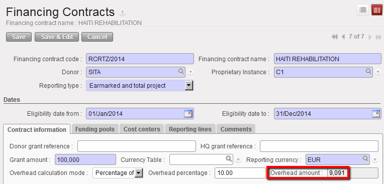 In UniField, the financing contracts are the key grant management tool as all reports are produced from there; they link the funding pools and the Donors to provide the ability to issue adequate reporting to institutional Donors.