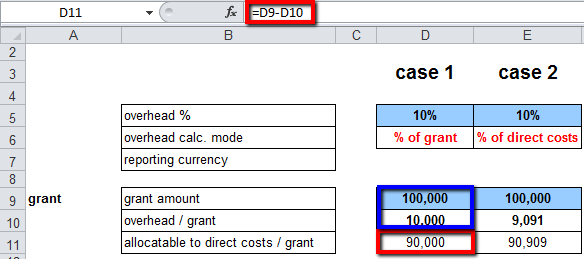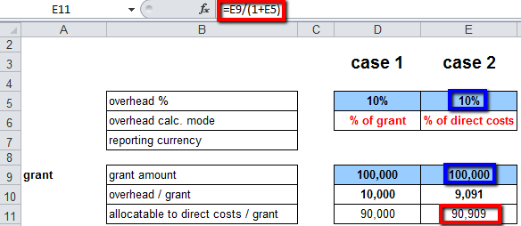 Direct cost and Overhead calcualtion explanation when overhead calculation is based on total grant