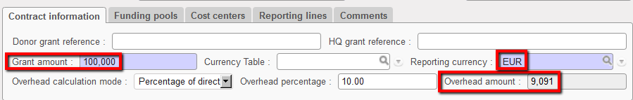 4. The overhead amount is automatically calculated based on the Grant amount.