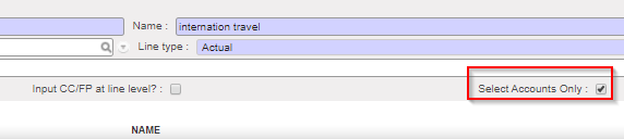 Please note that if you ticked the “Input Account Only” check box, the current display selection is removed (like when you tick on “Input CC/FP at line level”). The new display: only one column “G/L Accounts” is displayed.