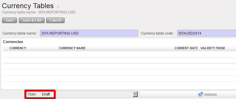 You will create a currency table by importing a file containing the currency rate and the functional currency with value equal to 1 (EUR = 1 or CHF = 1).