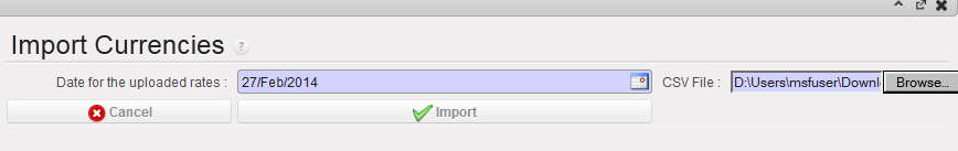 5. Select the uploaded rates date and {add attachment} to import the csv file containing the currencies and associated exchange rates.