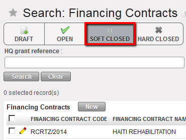 • {Hard-closed}: The final report was finalised and sent to the Donor; a hard-closed contract cannot be set back to ‘soft-closed’ ever again